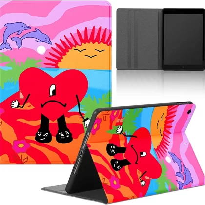 حافظة قابلة للطي بتصميم كرتوني لجهاز iPad 9.7 بنمط الحب اللطيف لأجهزة iPad من الجيل السادس/الخامس. |