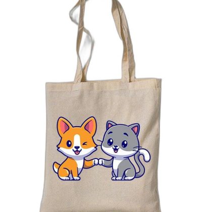 حقيبة حمل قطنية صديقة للبيئة بتصميم القط والكلب. |