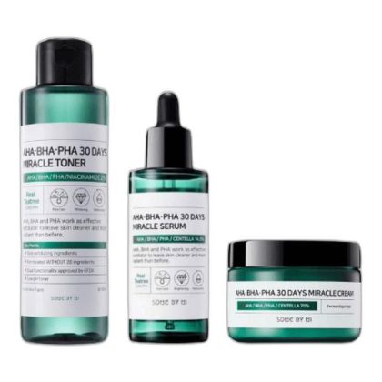 مجموعة من تونر ميراكل وسيروم وكريم مع AHA/BHA/PHA. |