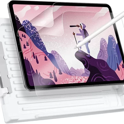واقي شاشة يشبه الورق من قطعتين لجهاز iPad Pro مقاس 11 بوصة وآيباد إير 5/الجيل الرابع - يوفر ملمسًا ورقيًا ومتجاوبًا وحماية من الخدوش مع درج سهل الاستخدام. |