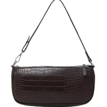 حقيبة كروس بودي بلون القهوة بحزام قصير عتيق ونمط تمساح. |