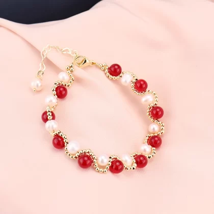 سوار من اللؤلؤ الطبيعي للنساء على الطراز الكوري سوار من حجر العقيق الأحمر الأنيق لجذب الصديقات من زهر الخوخ كهدية مجوهرات متخصصة |