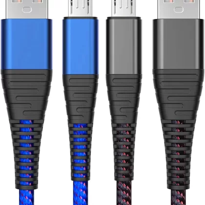 كابل شحن مايكرو يو إس بي بطول 10 أقدام لأجهزة بلاي ستيشن 4/إكس بوكس ون S/X وهواتف أندرويد - عبوة من قطعتين. |