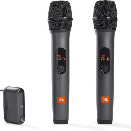 نظام ميكروفون لاسلكي JBL بجودة صوتية عالية وجهاز استقبال ثنائي القناة ووقت تشغيل 6 ساعات وبطاريات قابلة للاستبدال. |