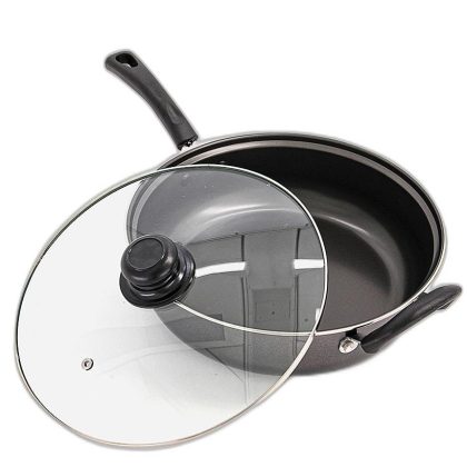مقلاة سوداء مانعة للالتصاق مع غطاء - 27 × 9 سم. |