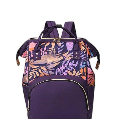 حقيبة حفاضات الأم باللون الأرجواني مع أحزمة مبطنة قابلة للتعديل - سعة كبيرة (18-24 شهرًا) |