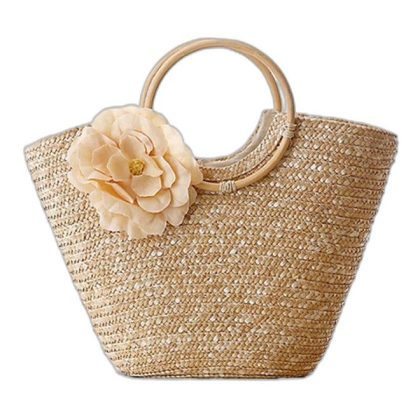 حقيبة يد منسوجة باللون البيج بتصميم زهرة العشب. |