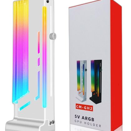 قوس دعم ARGB GPU أبيض مع قاعدة مغناطيسية وتعديل منزلق لبطاقة الرسومات. |