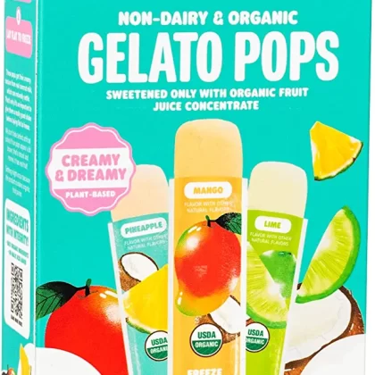 20 عبوة من جيلاتو بوبس بحليب جوز الهند العضوي من DeeBee's، بدون سكر مكرر أو نكهات/ألوان صناعية. |