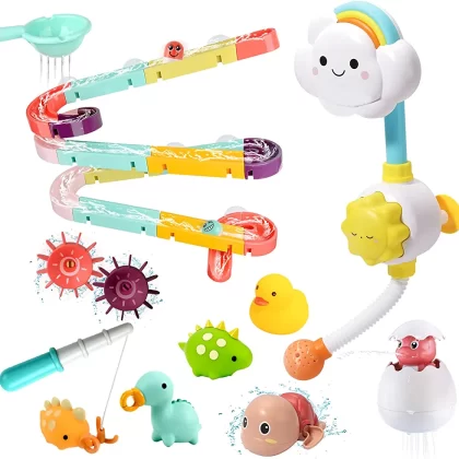 مجموعة ألعاب الاستحمام للأطفال الصغار مع دش وألعاب التدفق العائمة ولعبة الصيد. |
