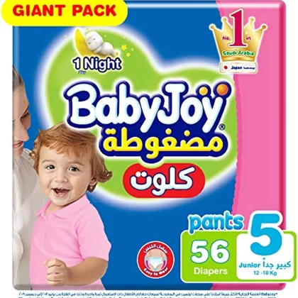سروال حفاضات بيبي جوي للصغار، مقاس XXL، 56 قطعة، 12-18 كجم. |
