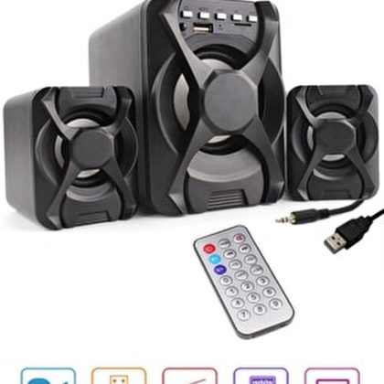 مكبر صوت يعمل بالبلوتوث يعمل بنظام صوتي 2+1 متوافق مع التلفزيون/الكمبيوتر/الهاتف، مكبر صوت يو اس بي، قارئ بطاقات راديو اف ام |