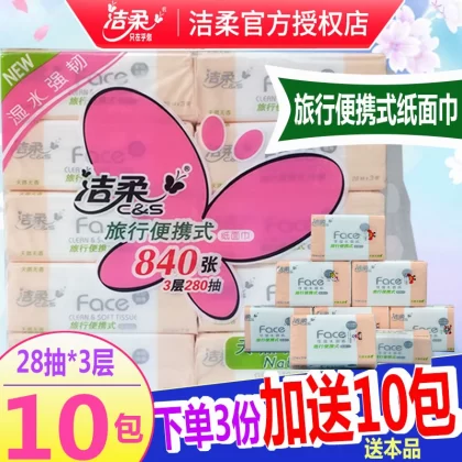 جيرو مناديل ورقية صغيرة، منديل مربع للسفر، مناديل مياه قابلة للبلل، 3 طبقات * 28 عبوة، 10 عبوات |