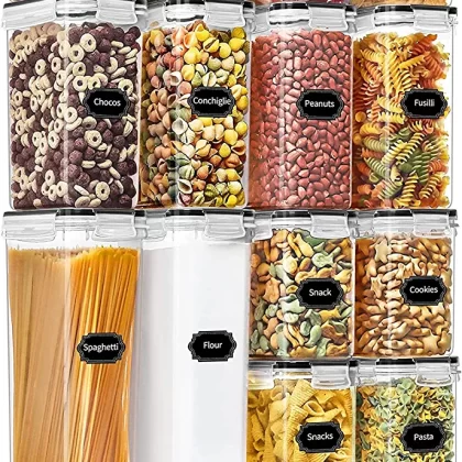 14-Piece Stackable Plastic Food Storage Set with Labels & Marker, BPA-Free and Safe for Dishwasher, Microwave, and Freezer. |