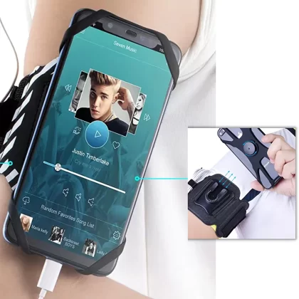 سوار هاتف محمول قابل للدوران بزاوية 360 درجة مع جيب بسحّاب وفتحة للبطاقات لممارسة التمارين والركض وركوب الدراجات والمشي والتنزه. |