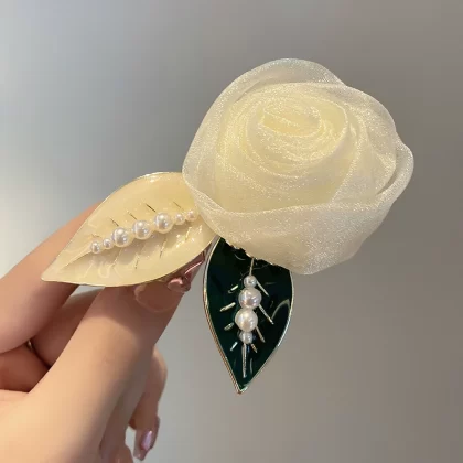 دبوس شعر وردي فرنسي أنيق على الجزء الخلفي من الرأس، زهرة رأس بمزاج صيفي خيالي، غطاء رأس أنيق بمشبك ذيل حصان |