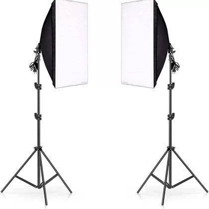 مجموعة إضاءة Softbox للتصوير الفوتوغرافي مع مجموعتين من الصناديق اللينة مقاس 50 × 70 سم وحوامل الإضاءة. مثالي لمعدات استوديو الصور. |