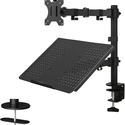 حامل كمبيوتر محمول قابل للتعديل مع درج لوحة مفاتيح لشاشات LCD وأجهزة الكمبيوتر المحمولة حتى 10 كجم و 40 سم. |