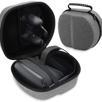 حقيبة سفر صلبة رمادية من Skade لـ Oculus Quest and Quest 2، تحمي سماعة الواقع الافتراضي وملحقات وحدات التحكم أثناء النقل. |