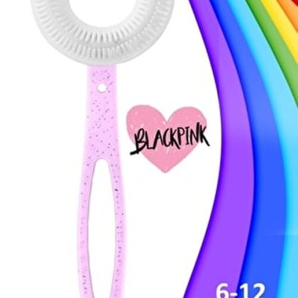 فرشاة أسنان Lyra الاحترافية العملية على شكل حرف U للأطفال من سن 6 إلى 12 عامًا باللون الأسود والوردي |