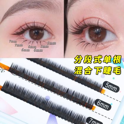 رموش مينغلو السفلية، رموش صناعية، حزمة مختلطة، مجموعة واحدة، شعر خيالي، شعر طبيعي مجزأ، تطعيم C-warp |