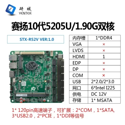 يانيو التحكم الصناعي R52V لوحة التوجيه الناعمة 6 جيجابت منفذ الشبكة سيليرون 5205U الكمبيوتر الصناعي Aikuai الخادم |
