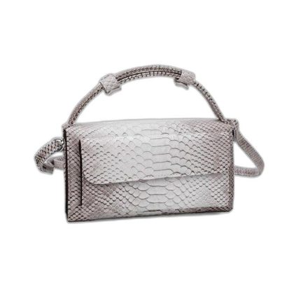 حقيبة كروسبودي بيضاء بنمط الأفعى. |