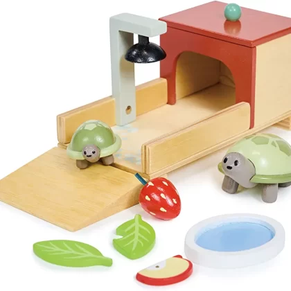 مجموعة السلحفاة الخشبية للحيوانات الأليفة - تتضمن 10 قطع: السلحفاة المومياء والطفل والمنزل والطعام - مثالية للأطفال من سن 3 سنوات فما فوق |