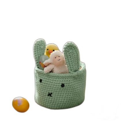 سلة عيد الفصح الخضراء مع مجموعة الكروشيه. |