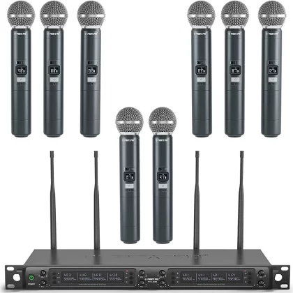 نظام ميكروفون لاسلكي مع مجموعة ميكروفون معدنية محمولة - Phenyx Pro PTU6000A. يغطي 328 قدمًا ويحتوي على 8 × 40 قناة. |