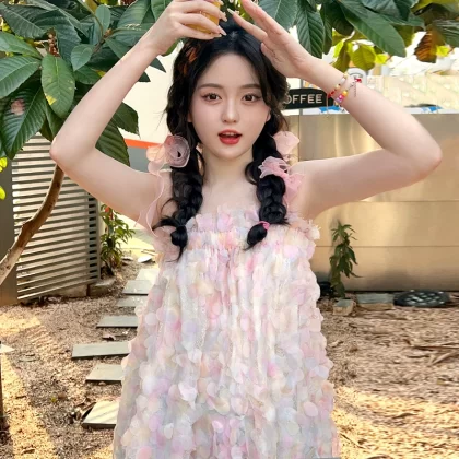 فستان بحمالات أنيق على طراز الحب الأول الكوري |