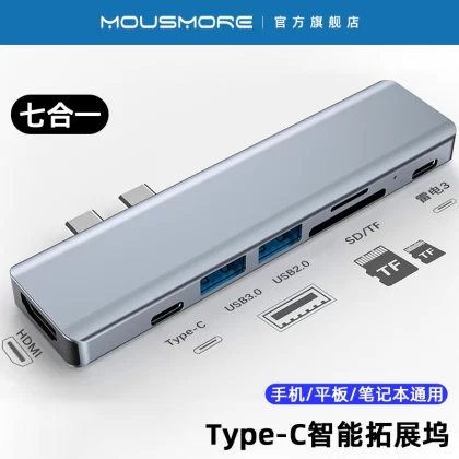 Mousmore مناسب لأجهزة Apple macbook Notebook Dual Type-c توسيع قاعدة USB3.0 متعددة الواجهات Thunderbolt 3 موسع HDMI Huawei الهاتف المحمول PD100 من اثنين إلى سبعة سبائك الألومنيوم 7 في 2 |