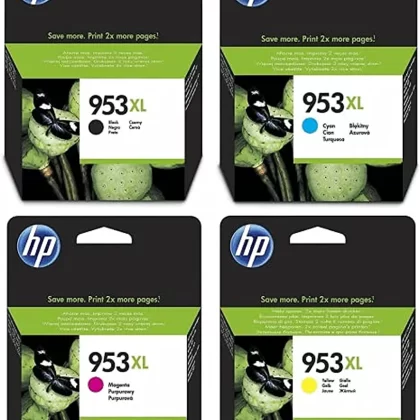 خراطيش حبر HP 953XL الأصلية باللون الأسود والأزرق والأرجواني والأصفر. |