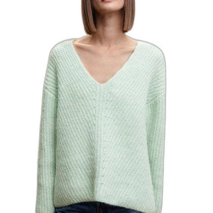 سترة محبوكة برقبة على شكل حرف V. |