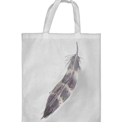حقيبة تسوق بيضاء مع طباعة ريش الطيور. |