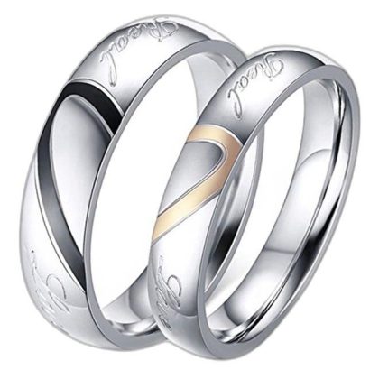 خواتم زفاف متطابقة على شكل قلب للأزواج مصنوعة من الفولاذ المقاوم للصدأ. |