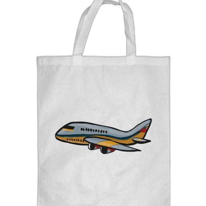 حقيبة تسوق بيضاء مع طائرات مطبوعة. |