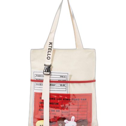 حقيبة كتف باللونين البيج والأحمر مصنوعة من جلد البولي يوريثان. |