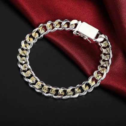 مجوهرات فضية مخصصة للرجال 10M لون جانبي بإبزيم مربع، سوار عصري من البوتيك، سوار شخصي متعدد الاستخدامات |