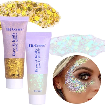 مجموعة جل لامع بتصميم حورية البحر من MAKINGTEC باللونين الأبيض والذهبي لمكياج المهرجانات. يتضمن جليتر كثيف للجسم والوجه والعين والشفاه والشعر والأظافر. |