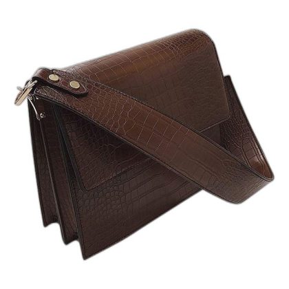 حقيبة كروسبودي باللون البني مع لمسة نهائية مزخرفة. |