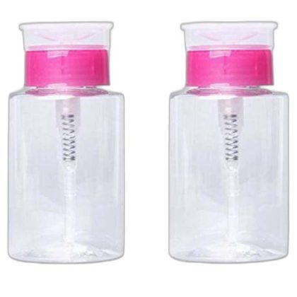 مجموعة من حاويتي ضخ لمزيل طلاء الأظافر بألوان واضحة وزهرية وبيضاء. |