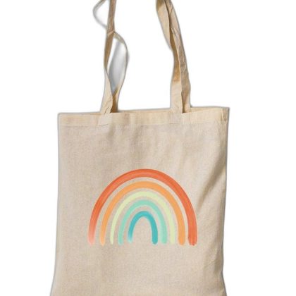حقيبة قماش قطنية بألوان قوس قزح - قابلة لإعادة الاستخدام وصديقة للبيئة. |