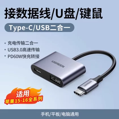 محول Green Alliance OTG من النوع C إلى منفذ USB شحن سريع مناسب لكابل بيانات iPhone15 محول قرص U Apple 16 Pro Max مناسب لهاتف Huawei المحمول والكمبيوتر اللوحي محرك فلاش USB اثنين في واحد |