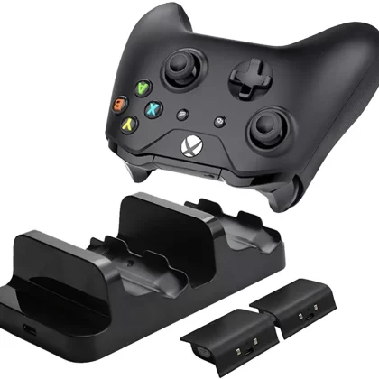محطة شحن مزدوجة لـ Xbox One (S/X) مع حزم بطاريات قابلة لإعادة الشحن. |