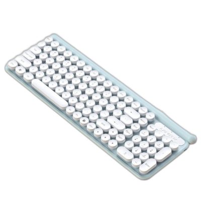 لوحة مفاتيح سلكية زرقاء مع 99 مفتاحًا صامتًا للاستخدام المكتبي. |