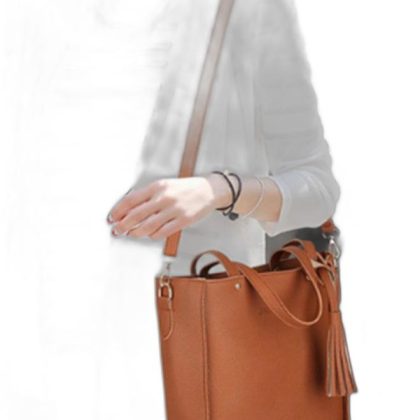 حقيبة كتف بنية مع 4 أقسام واسعة. |