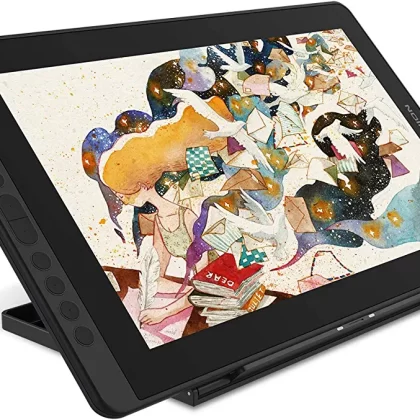 تابلت رسم أسود HUION KAMVAS 16 (2021) بشاشة مغلفة بالكامل، قلم بدون بطارية، قابل للإمالة، 10 مفاتيح ضغط، كابل من النوع C، حامل قابل للتعديل، 15.6 بوصة. |