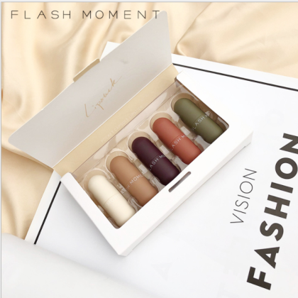 مجموعة من 5 كبسولات أحمر شفاه غير لامع ليس من السهل أن يبهت، أحمر شفاه صغير مرطب يدوم طويلاً ومقاوم للماء للطالبات |