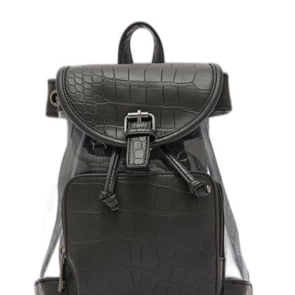 حقيبة ظهر سوداء شفافة مع لوحة تمساح صناعية. |